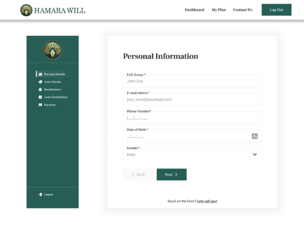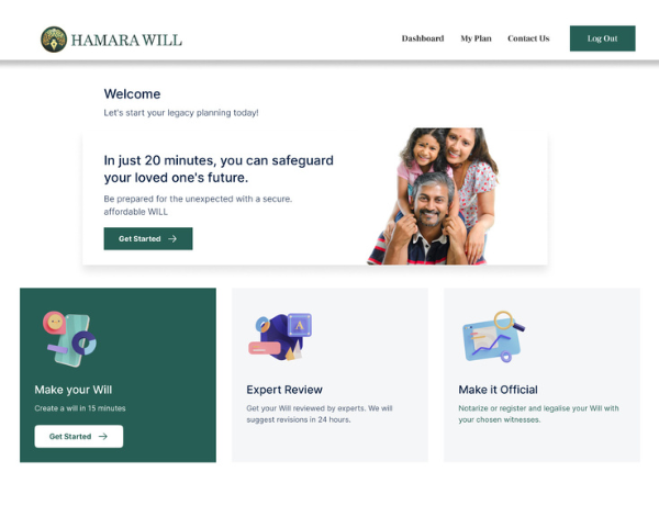 We approached the project with one goal in mind: make will creation as easy as ordering something online. Our team designed and developed a secure, user-friendly web application where individuals could draft and manage their wills with just a few clicks. The platform was built to handle sensitive data safely, while also guiding users step by step to ensure clarity and peace of mind. The result was a modern, reliable solution that reshaped how people view will-making.